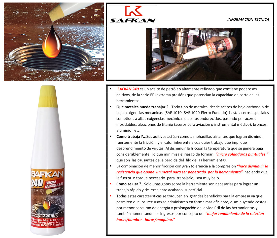 LUBRICANTE SAFKAN 240 Y ARTÍCULOS PARA MANTENCIÓN INDUSTRIAL LA GOTA MÁGICA DE LUBRICANTE SAFKAN 240 GEL DECAPANTE INOXIDABLE – TINTAS PENETRANTES